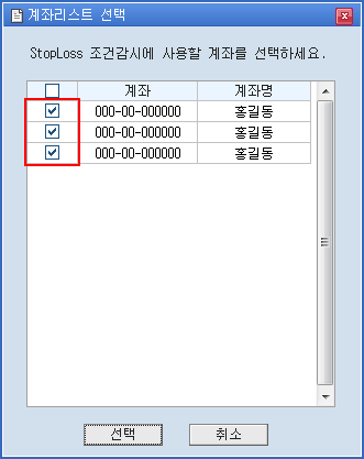 ¹Ý¸é 'Á¾¸ñº° Stoploss' »óÅ¿¡¼´Â º¸À¯Çϰí ÀÖ´Â Àܰíµé¿¡ ´ëÇÏ¿© Stoploss ÁÖ¹® Á¶°ÇÀ» ¼³Á¤ÇÒ ¼ö ÀÖ½À´Ï´Ù.