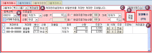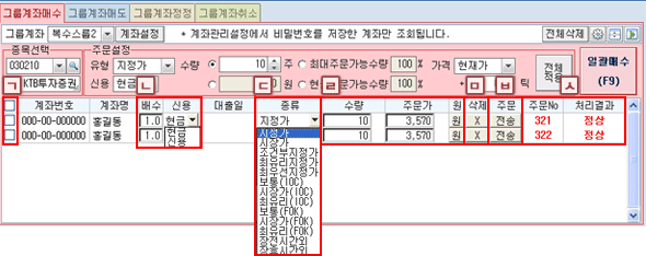 ¹öưÀ» Ŭ¸¯ÇϽðųª, Űº¸µå ´ÜÃàŰ F9À» ´©¸£½Ã¸é, 'Áֽı׷ì¸Å¼öÁÖ¹® È®ÀÎâ' ÀÌ ÆË¾÷ µÇ¸ç, ¼±ÅÃÇÑ Á¾¸ñ¿¡ ´ëÇÑ Àϰý¸Å¼ö ÁÖ¹®ÀÌ ½ÇÇàµË´Ï´Ù.