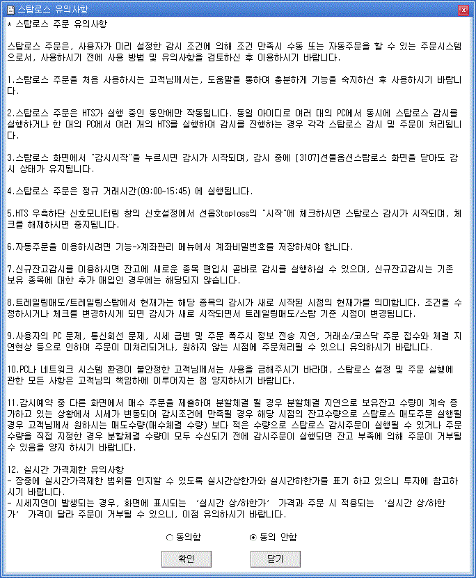 ¹öưÀ» Ŭ¸¯ÇÏ¸é ¡®½ºÅ¾·Î½º À¯ÀÇ»çÇס¯ ȸéÀÌ ÆË¾÷ µÇ¸ç, ½ºÅ¾·Î½º À¯ÀÇ»çÇ×ÀÇ ³»¿ëÀ» ÃæºÐÈ÷ ¼÷ÁöÇϽŠÈÄ ¡®µ¿ÀÇ¡¯ ¹öưÀ» Ŭ¸¯ÇÏ¼Å¾ß ÁÖ½Ä ½ºÅ¾·Î½º ÁÖ¹®À» ½ÇÇàÇÒ ¼ö ÀÖ½À´Ï´Ù.