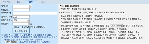 구체적인 상세 내용은 우측에 "펀드 매매 유의사항" 내용을 참고하시기 바랍니다.